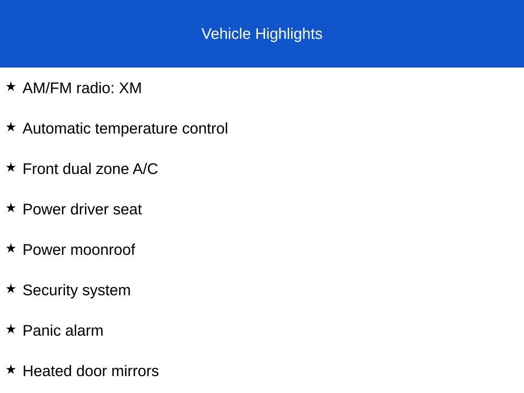 - Reclining leather heated front bucket seats-inc: 8-way pwr driver seat, driver pwr lumbar support, adjustable head restraints, leather armrests