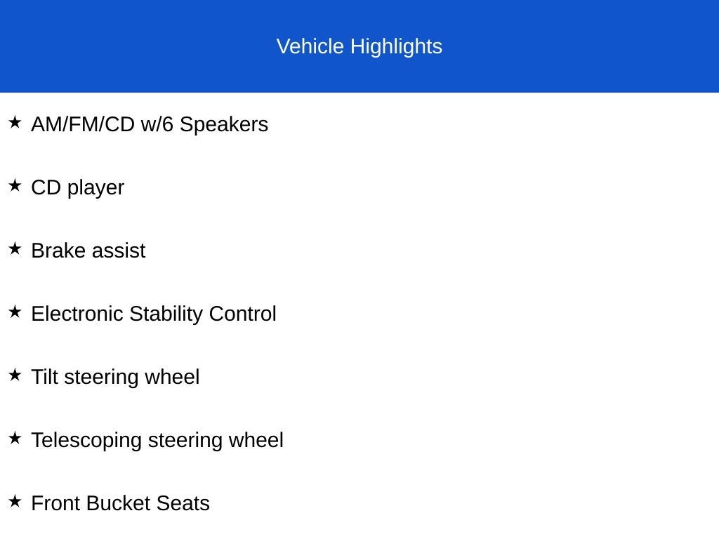 - AM/FM stereo w/CD/MP3/WMA player -inc: (6) speakers, aux audio jack, satellite radio receiver pre-wire