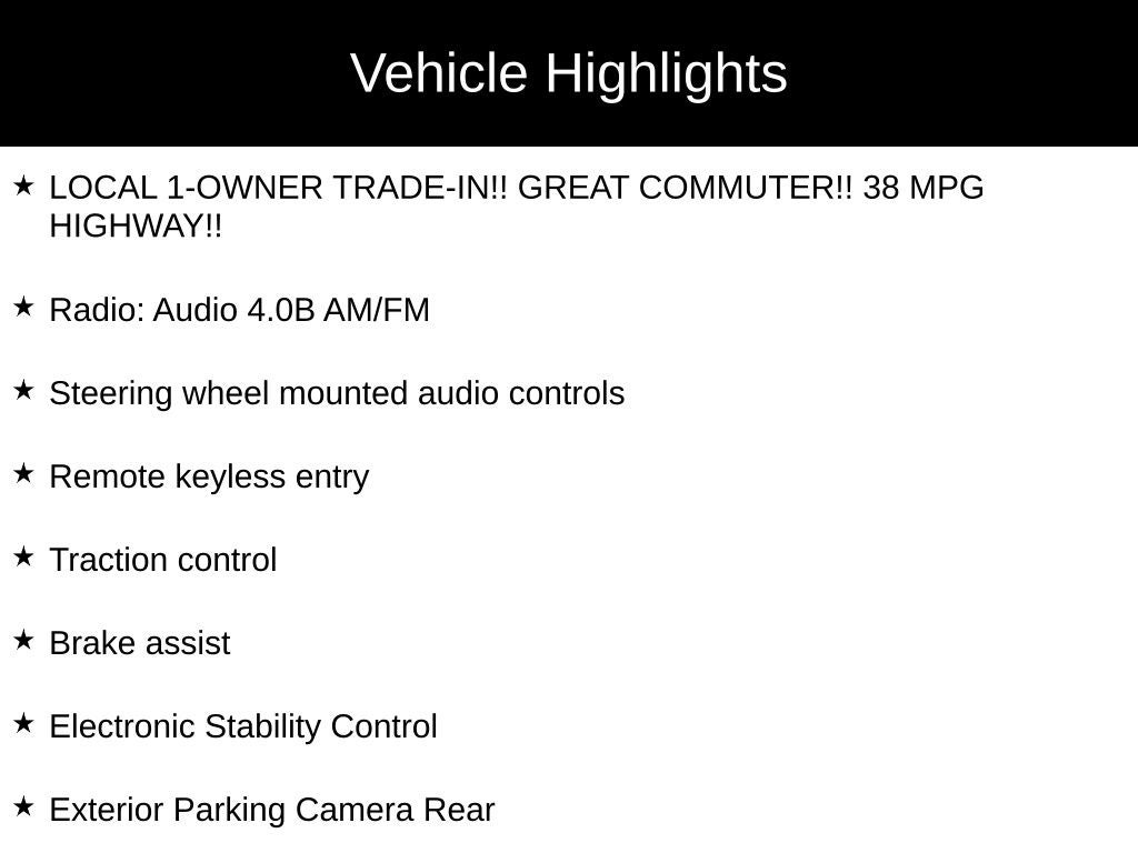 - LOCAL 1-OWNER TRADE-IN!! GREAT COMMUTER!! 38 MPG HIGHWAY!!
