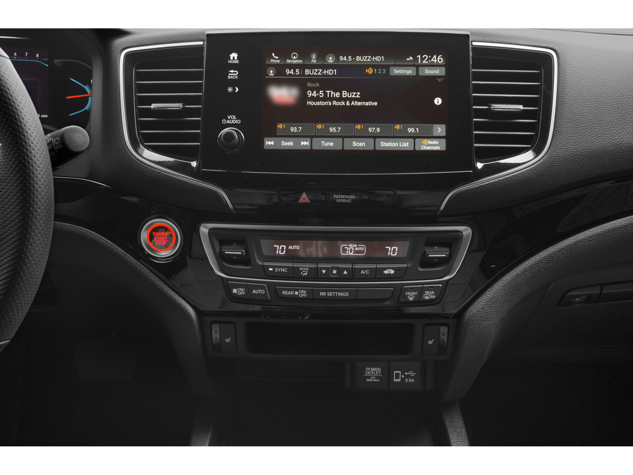 - Radio: 540-Watt Premium Audio System w/10 Speakers -inc: subwoofer, 8" display audio w/high-resolution electrostatic touch-screen and customizable feature settings, Bluetooth® HandsFreeLink, Bluetooth® streaming audio, MP3/auxiliary input jack in center console, Radio Data System (RDS), Speed-Sensitive Volume Compensation (SVC), (3) 2.5-amp USB charging ports, 12-volt power outlets in front console, center console and cargo area, HondaLink, Apple CarPlay integration, Android Auto integration, CabinControl remote compatibility, SMS text message function, SiriusXM, HD Radio, Wi-Fi hotspot capability, 2.5-amp USB smartphone/audio interface port in front console, Honda Satellite-Linked Navigation System w/voice recognition and Honda HD digital traffic, 115-volt power outlet and HondaLink subscription services SiriusXM services require a subscription after any trial period. Honda HD digital traffic service is only available in the United States, except Alaska.