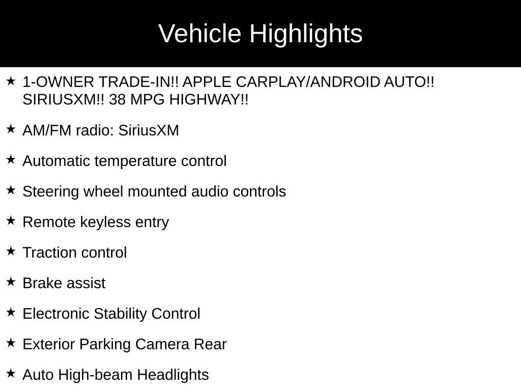 - 1-OWNER TRADE-IN!! APPLE CARPLAY/ANDROID AUTO!! SIRIUSXM!! 38 MPG HIGHWAY!!